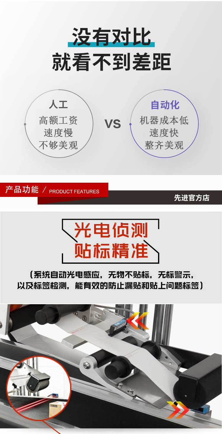 不干膠貼標(biāo)機 由于該貼標(biāo)機采用機電一體化的技術(shù),選用大力矩步進電機驅(qū)動,及光電控制裝置、電源保護裝置等先進系統(tǒng),因此具有啟動緩沖功能,整體靈敏度高,低速扭矩大,速度穩(wěn)定,工作電壓穩(wěn)定,抗干攏能力強等技術(shù)特性。 保證了貼標(biāo)準(zhǔn)確、穩(wěn)定、可靠、高效。
